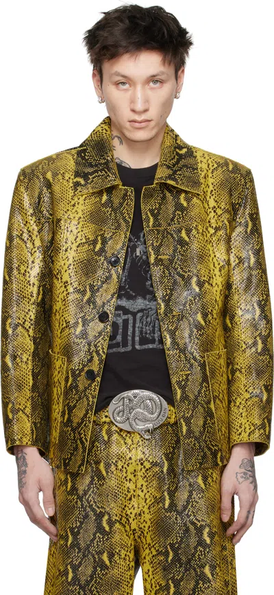Black & Yellow 'year Of The Snake' Creep Leather Jacket In Jungle Carpet Python