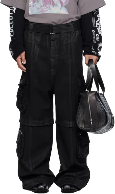 Black Coated Denim Cargo Pants