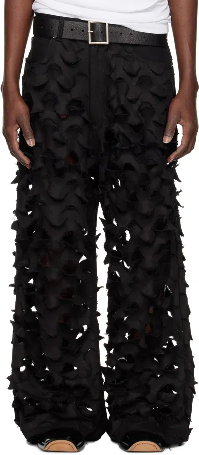 Gray Raw-cut Bontans Suede Pants In Black