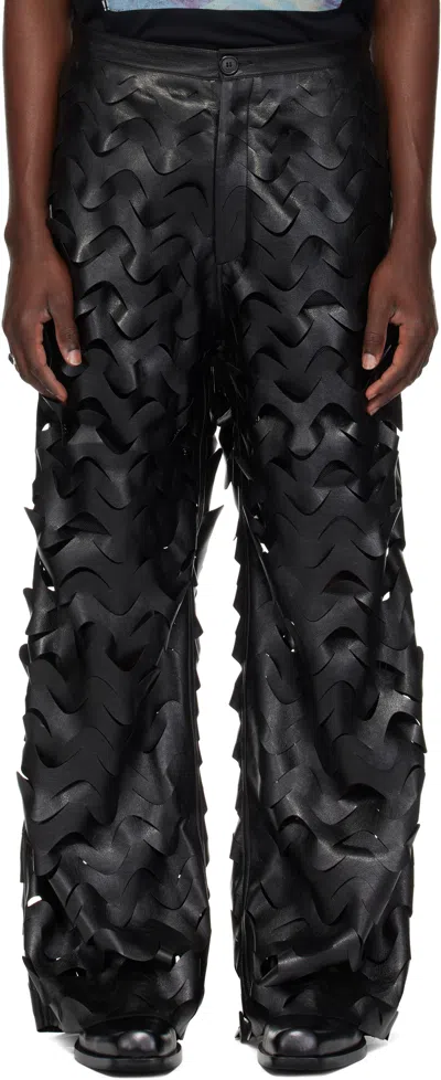 Black Laser Cut Wide-leg Faux-leather Pants
