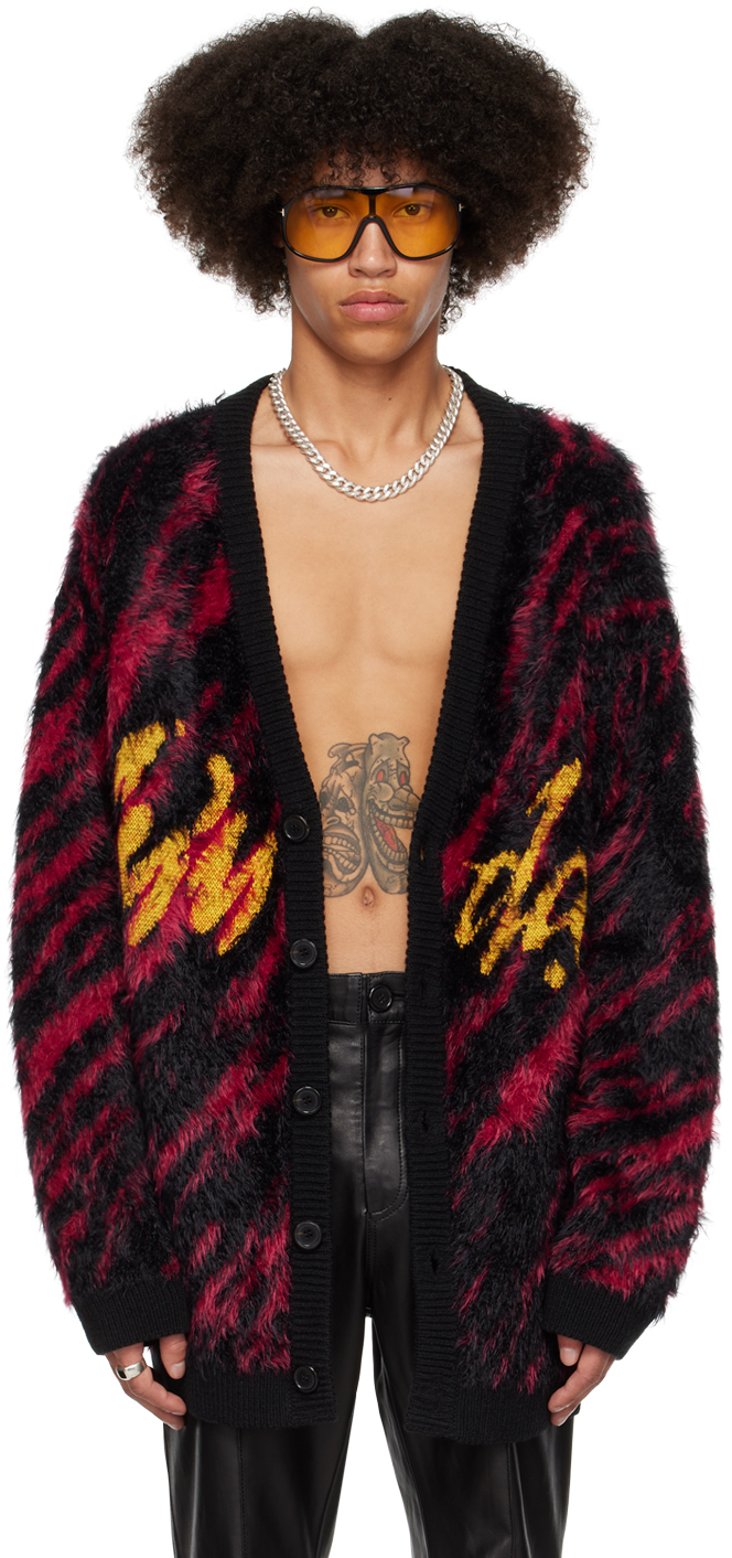 Black & Red Oversized Jacquard Cardigan In Black / Red