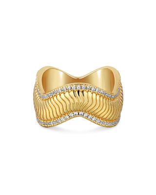 The Wavey Pave Snake Chain Ring In 14k Gold Plated