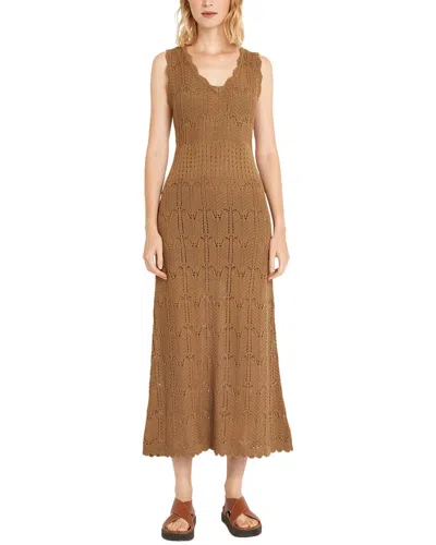 Linen-blend Midi Dress In Brown