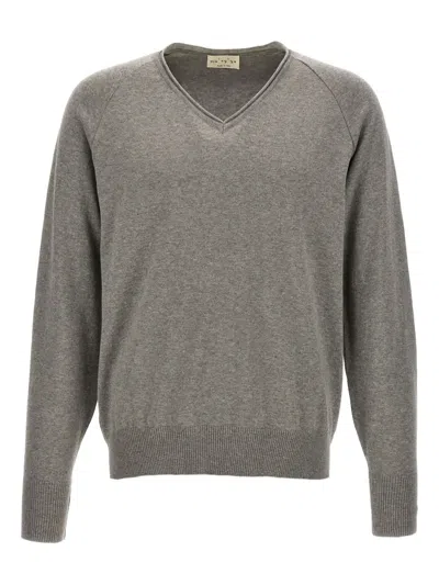 Cashmere Blend Wool Sweater With Ribbed Details In Gray