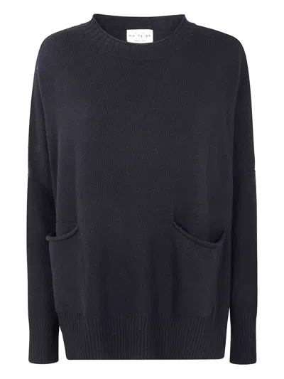 Black Knit Sweater With Round Neckline And Ribbed Finishes