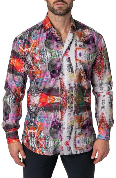 Fibonacci Skull Scramble Regular Fit Cotton Button-up Shirt In Multi