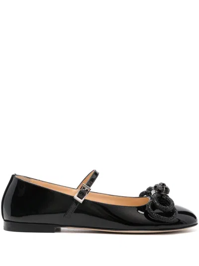 Patent Leather Mary Jane Ballet Flats With Jeweled Bow In Black