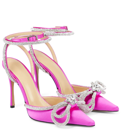 Double Bow Crystal-embellished Silk-satin Point-toe Pumps In Pink