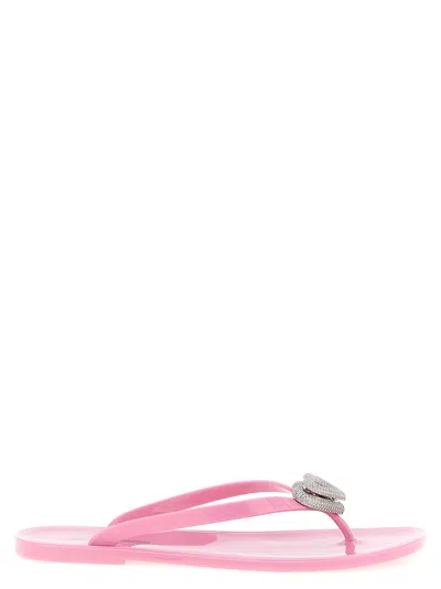 Neon Pink Pvc Crystal Embellished Star Slide Sandals