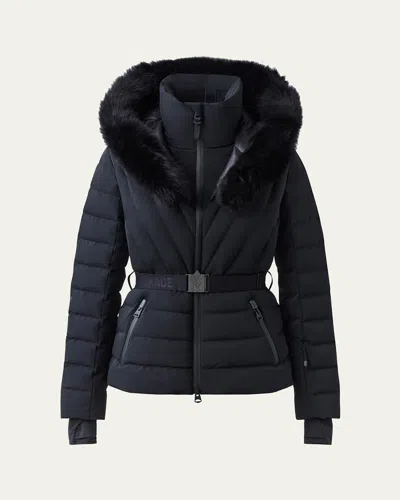 Elita Down Ski Jacket With Removable Shearling Trim In Black