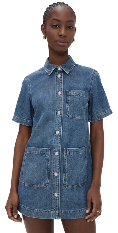 Airy Denim Boxy Mini Shirtdress Pickett Wash In Blue