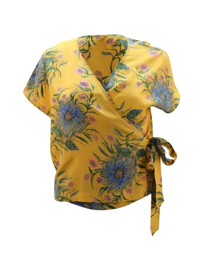 Pre-owned Side-tie Floral-print Blouse In Yellow