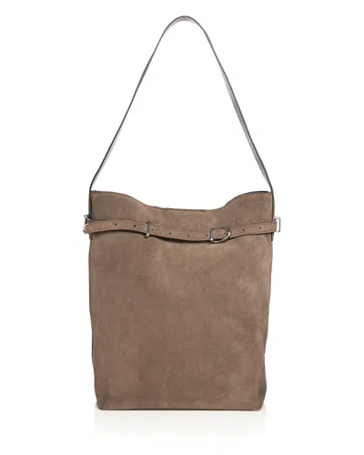 The Belted Suede Satchel Bag In Brown