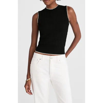 Mixed Stitch Sleeveless Sweater Black With Ivory Framing