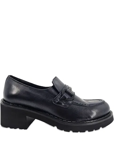 仿鳄鱼纹压纹皮质高跟乐福鞋