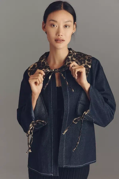 Cropped Puff-sleeve Denim Jacket In Blue