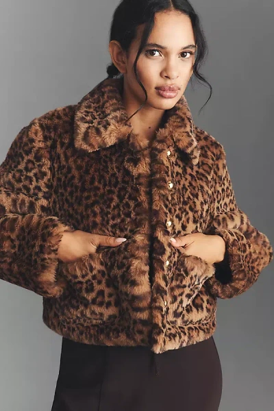 Faux-fur Leopard Crop Jacket In Brown