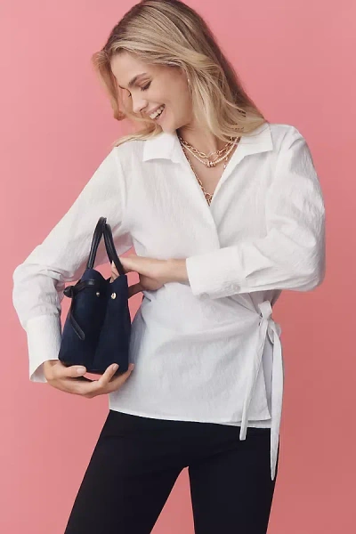 Long-sleeve Tie-waist Wrap Blouse In Blue