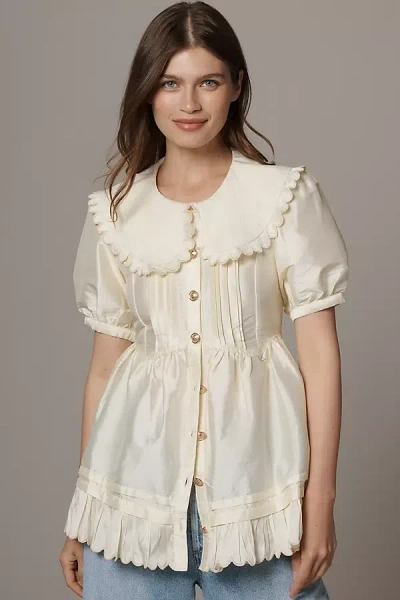 The Leandra Cashmere Shirred Yoke Blouse By In White