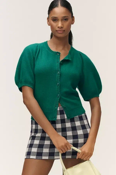 Puff-sleeve Cashmere Cardigan In Green