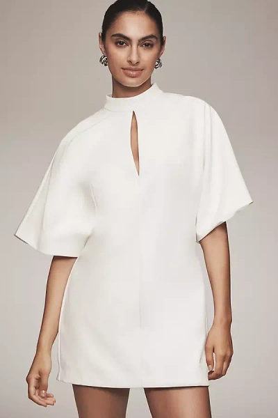 Short-sleeve Mock-neck Shift Mini Dress In White