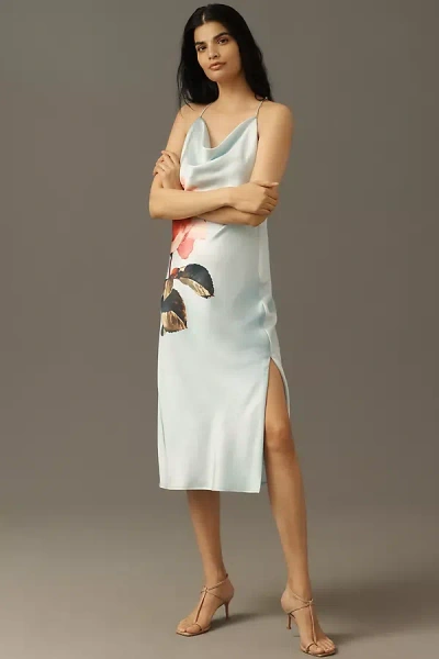 Sleeveless Cowl-neck Slip Midi Dress In Blue