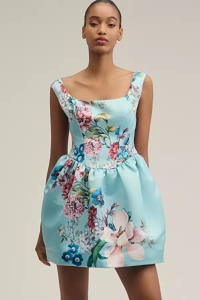 Square-neck Patterned Mini Dress In Multi