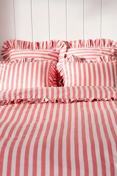 Cotton Striped Ruffle Printed Duvet Cover In Multi