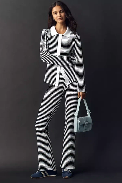Knit Stripe Flare Pants In Gray