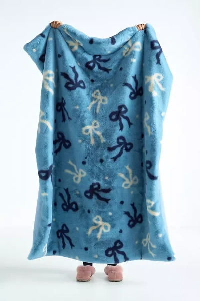 Printed Faux-fur Throw Blanket In Blue