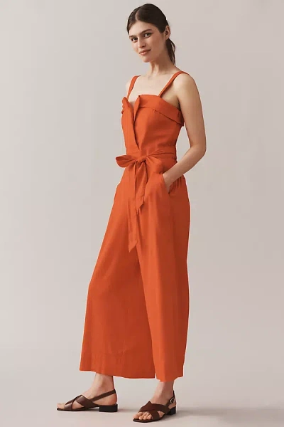 The Avery Wide-leg Pleated Jumpsuit By In Brown