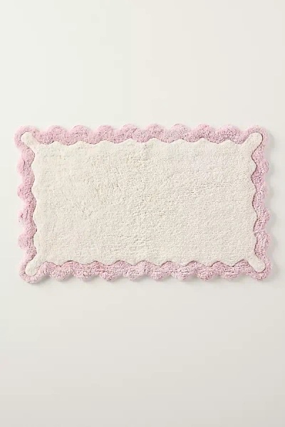 By Anthropologie Scalloped Cotton Bath Mat In Pink