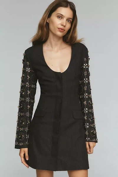 Long-sleeve Embellished Blazer Mini Dress In Black