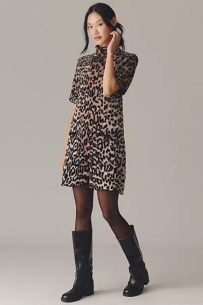 The Annalise Mock-neck Mini Sweater Dress By In Brown