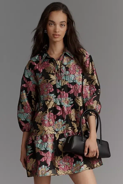 The Bettina Tiered Jacquard Mini Shirt Dress By In Brown