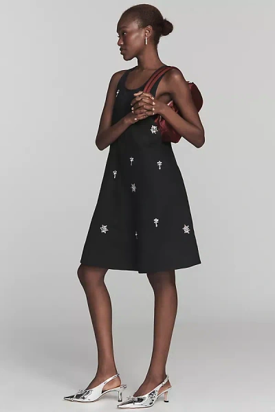 Sleeveless Beaded Shift Mini Dress In Black