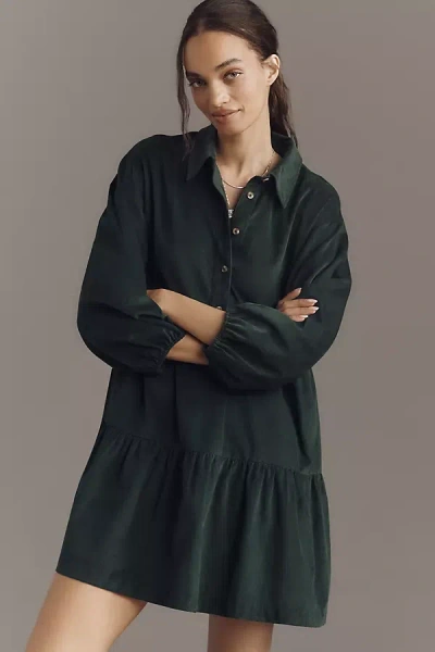 The Bettina Corduroy Tiered Mini Shirt Dress By In Pink