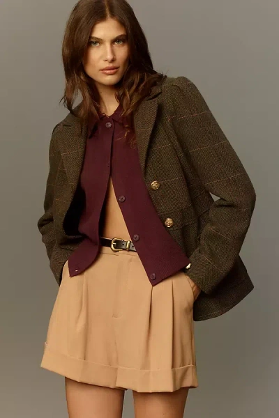 The Avery Pleated Trouser Shorts By In Beige
