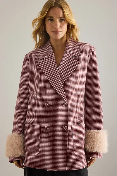 Houndstooth Faux Fur-cuff Blazer In Multi