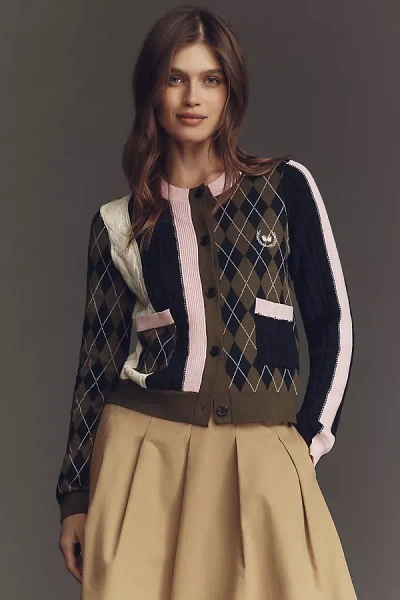 Brushed Embellished Wool Blend Cardigan In Animal Print