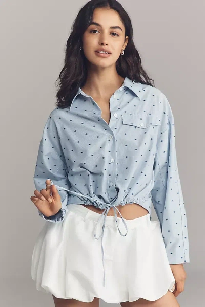 Long-sleeve Cinched Buttondown Shirt In Blue