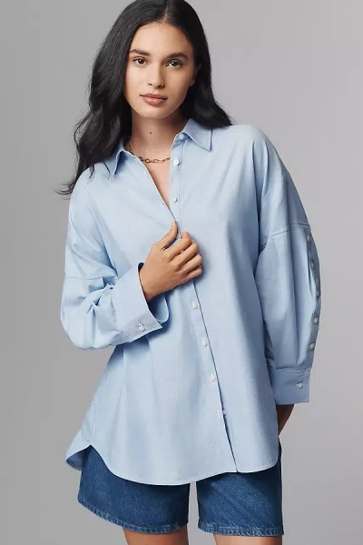 Puff Elbow-sleeve Boxy Buttondown Oxford Shirt In Blue