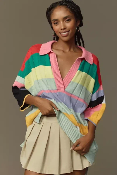 The Maxine Puff-sleeve Sweater Tee In Multi