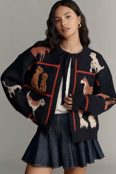 Dogs Tie-front Cardigan In Blue