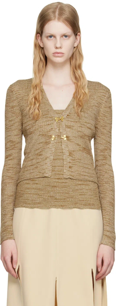 Tan Mia Cardigan In Space Dyed Sand W/go