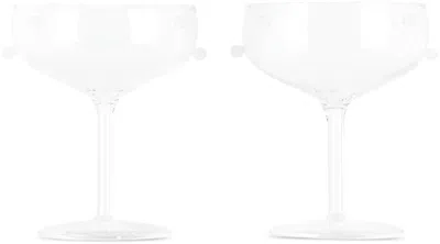 White Pomponette Champagne Coupe Set In Clear/opaque White