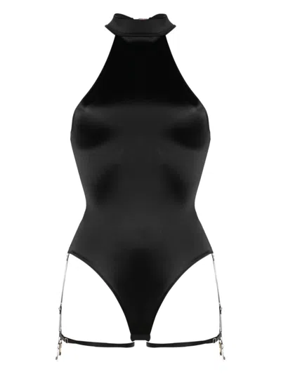 Mesh-panelled Mock-neck Bodysuit In 黑色
