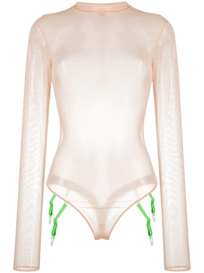 Contrast-strap Mesh Bodysuit In 褐色