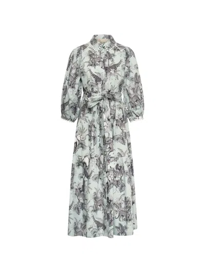 Animal-print Midi Dress In Gray