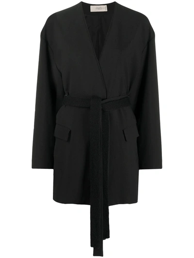 Belted V-neck Knit Jacket In Black